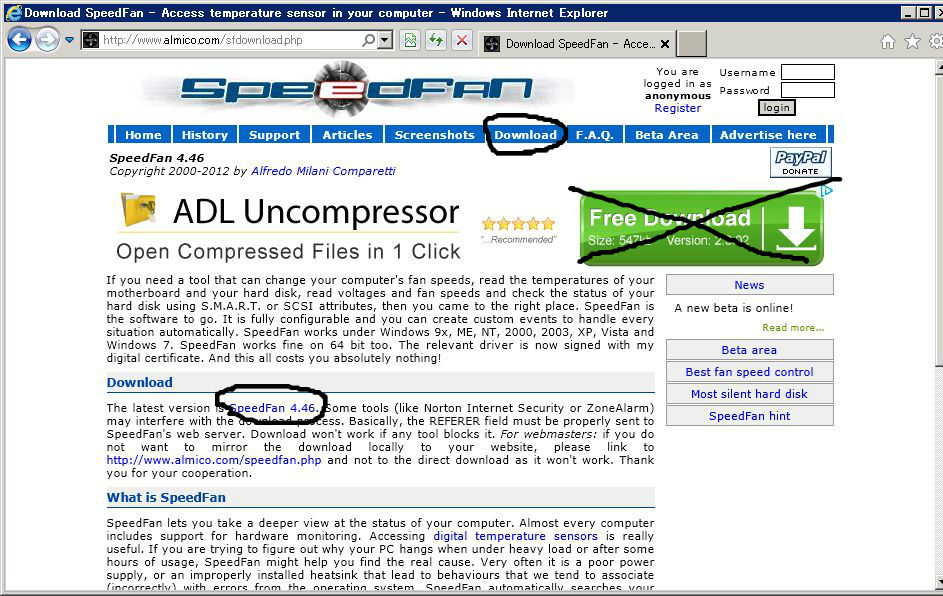 ※Downloadタブをクリックし、SpeedFAN 4.46 をクリックします